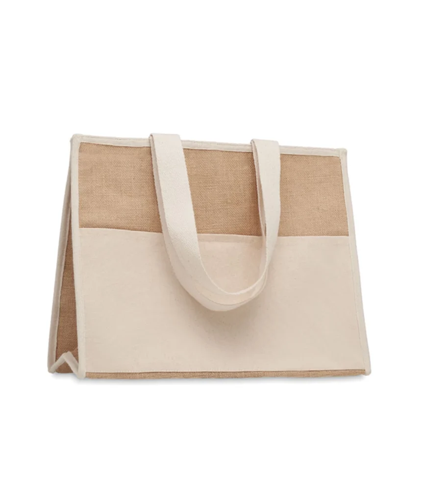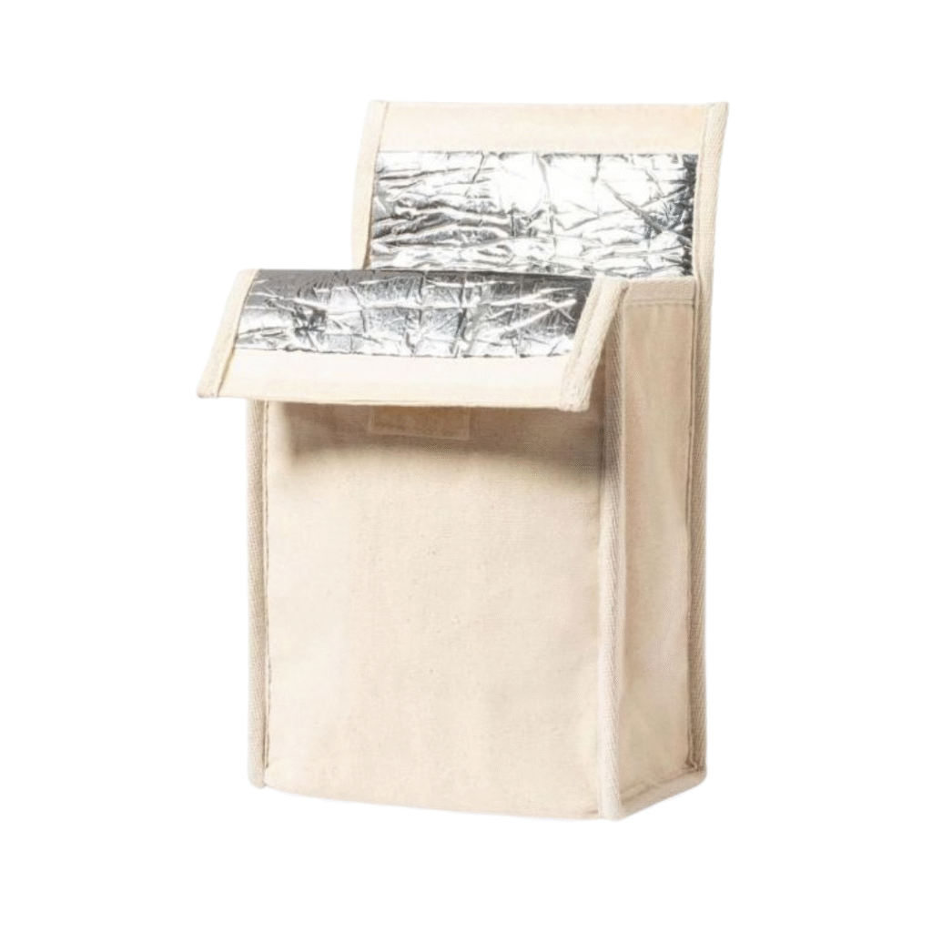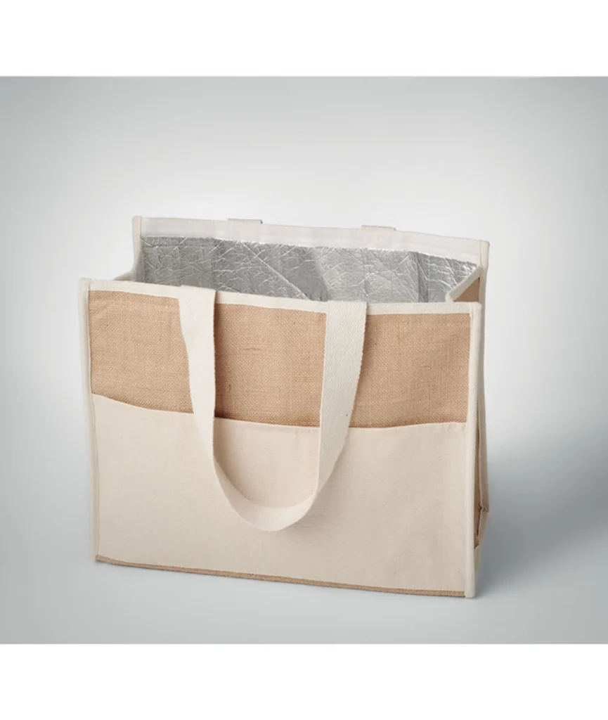An everyday insulated cooler bag combining cotton and jute — perfect for storing meals, drinks, or medication on the go.